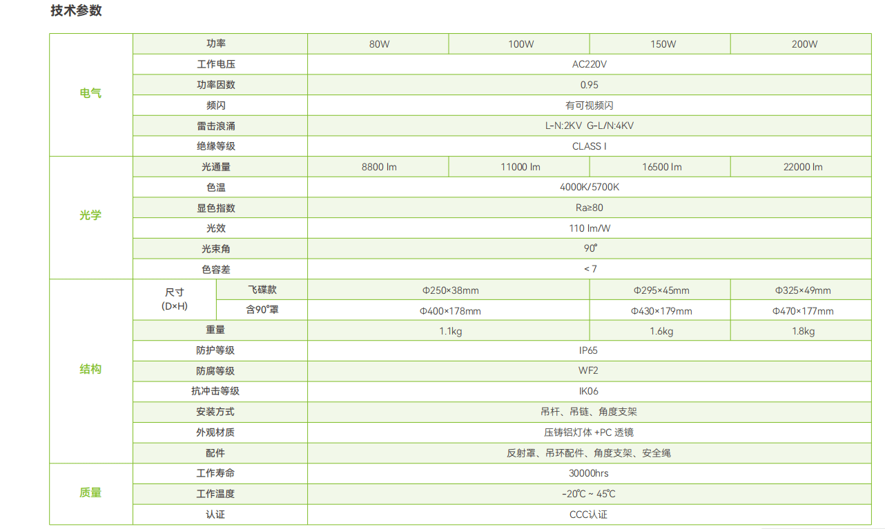 功率涵盖:80W、100W、150W、200W